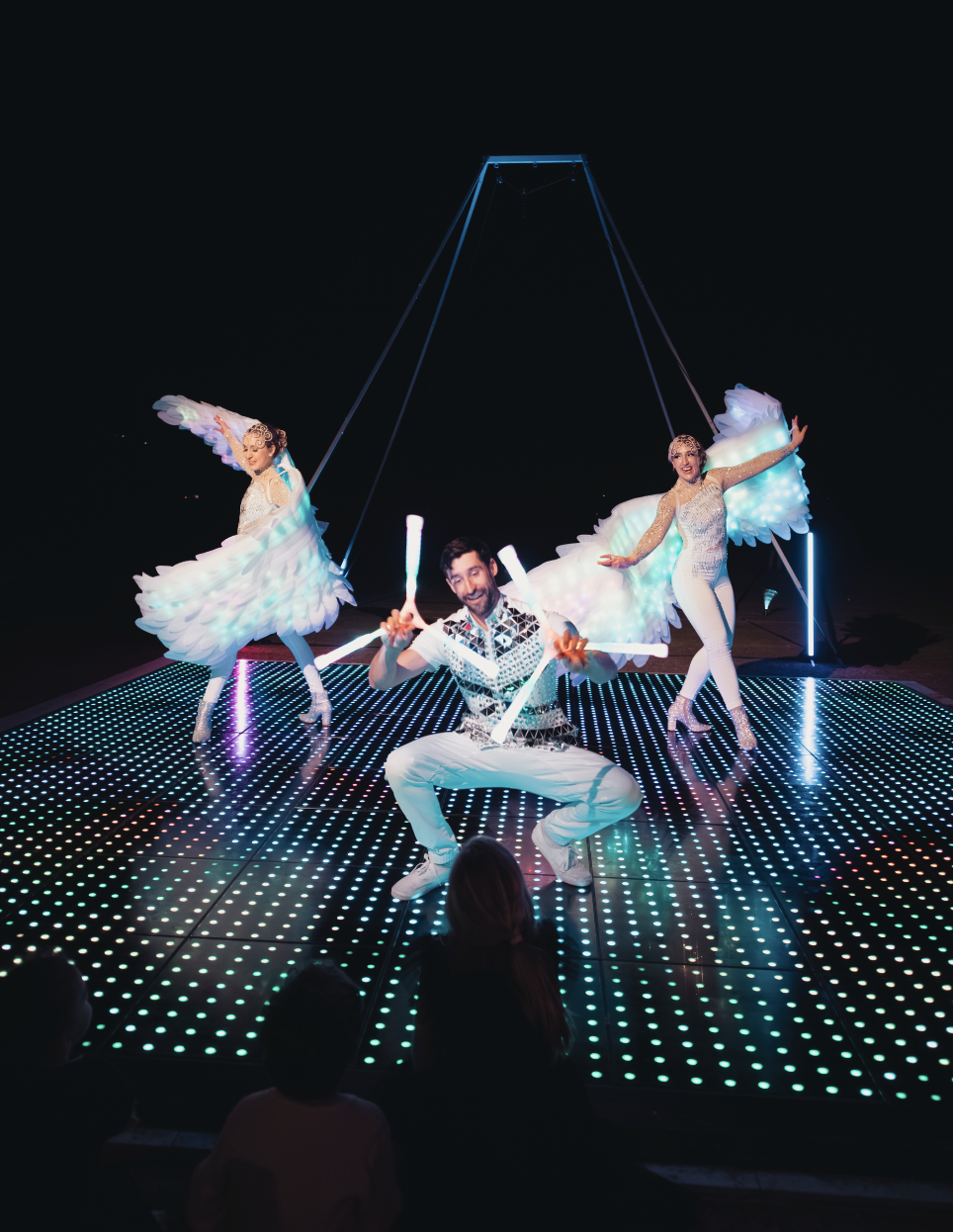 We offer everything from fire dancing, LED shows, and aerial acts to jugglers, living characters and beyond.